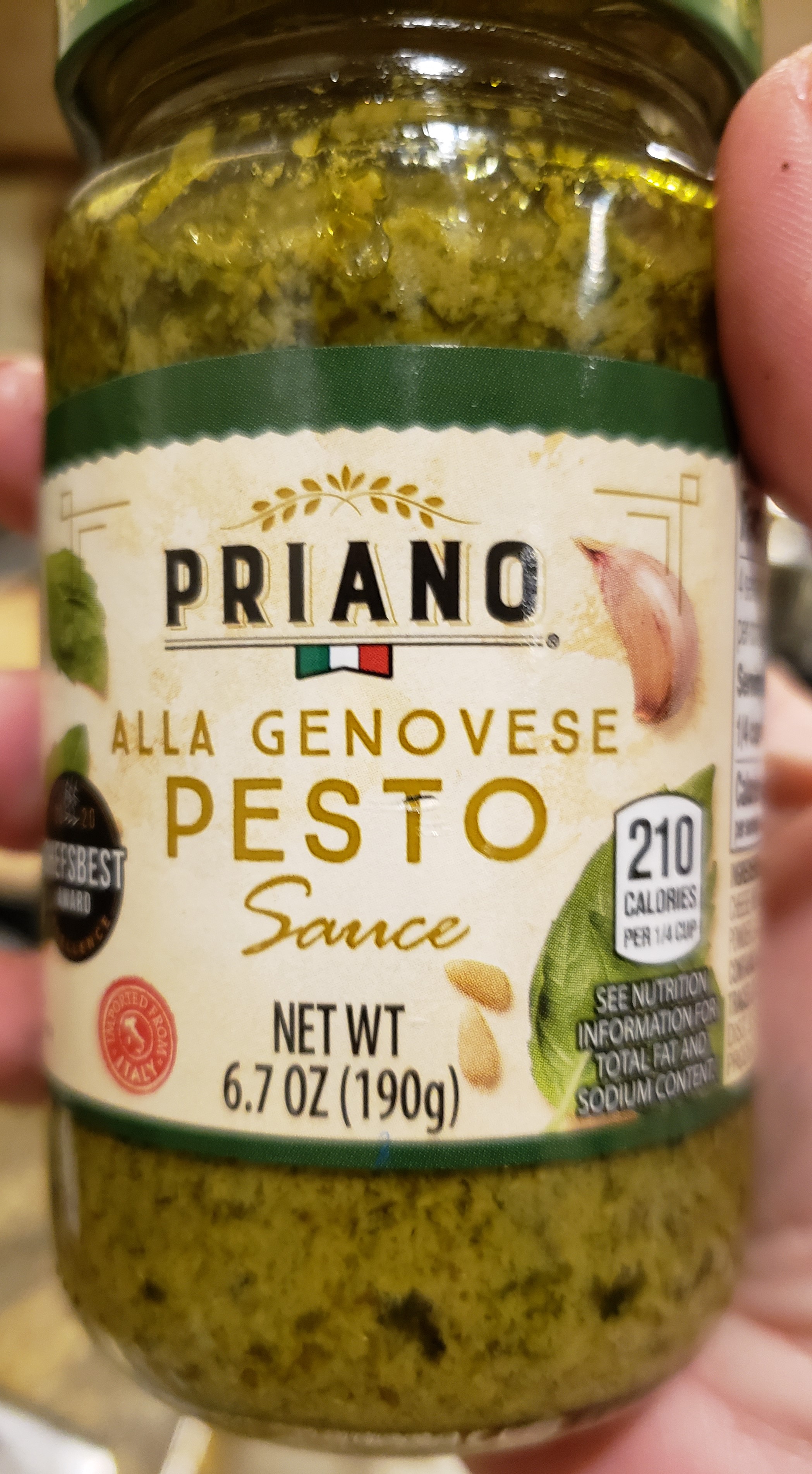 Pour the contents of a jar of pesto on the pizza crust and spread it to the edges.