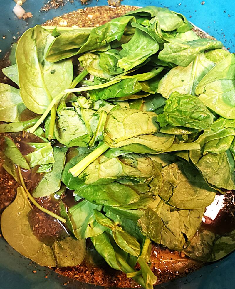 - Add the spinach and allow to wilt.