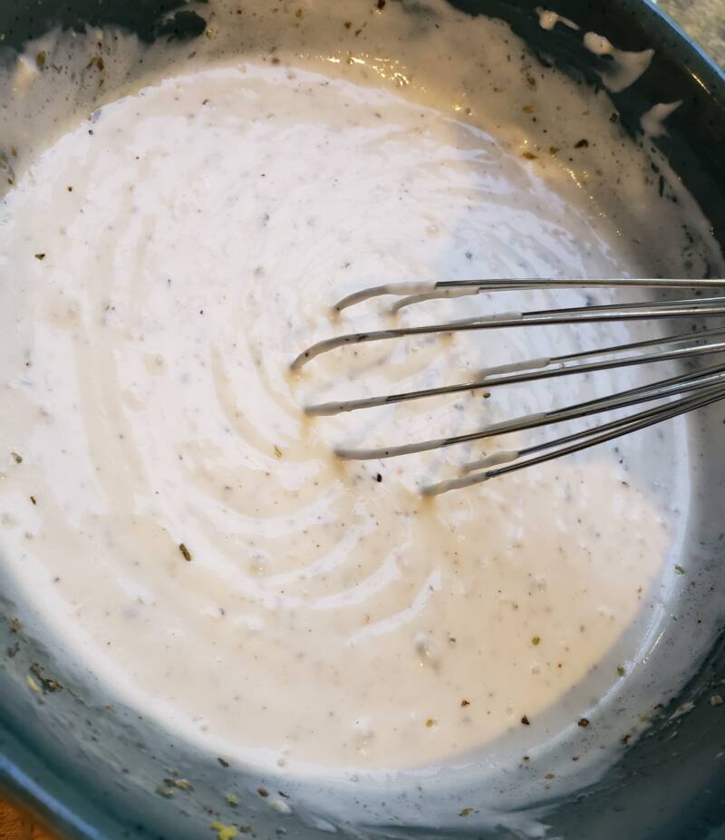 - In a separate bowl, combine the mayonnaise and milk. Whisk until smooth.