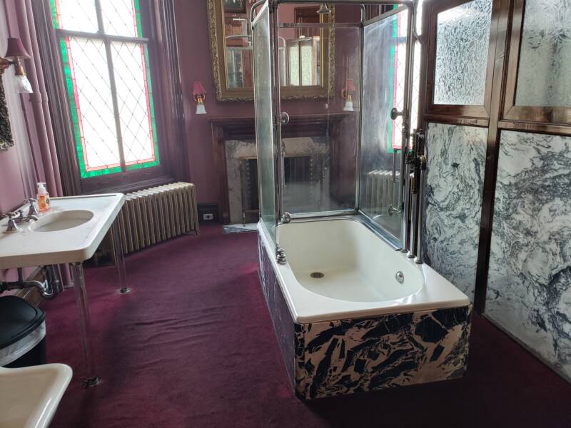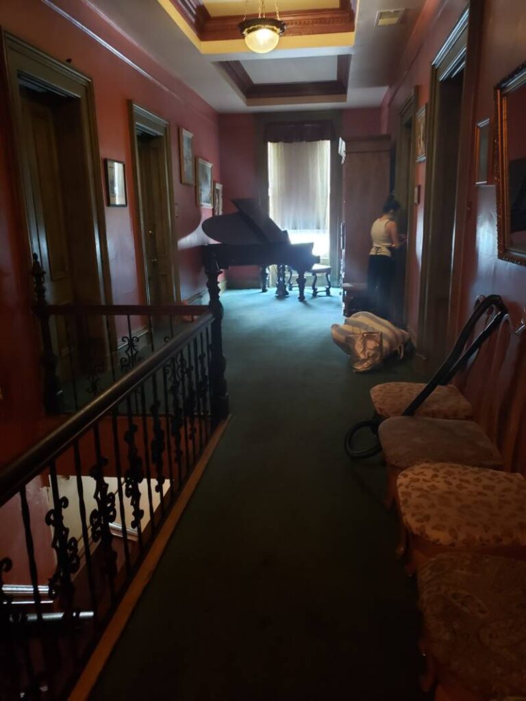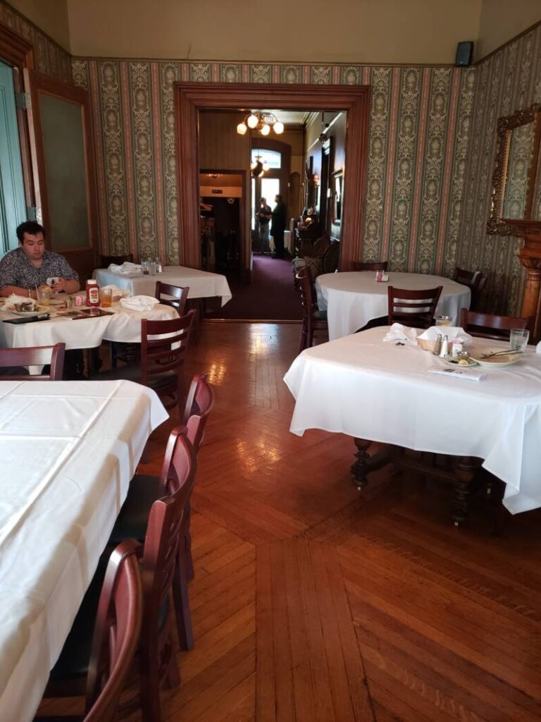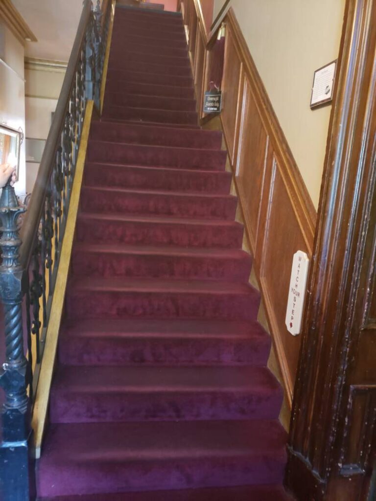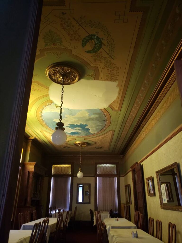 Other areas in the house accommodate restaurant seating and party areas. The décor is reminiscent of the Victorian Era. We were allowed to walk around upstairs to view the hotel area. Brave souls can reserve a room on the second or third floors. The details in the interior design are beautiful and remarkable. The mosaic tile floors in some of the rooms and the decorative painting on the high ceilings definitely demonstrate the artistry of the period.