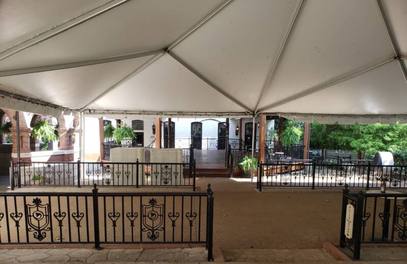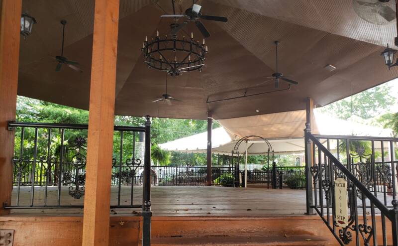 The mansion is also a popular and beautiful venue for weddings and other events. In the back and alongside the mansion, a covered brick patio offers a large, tented area to set up tables, chairs, etc. and includes a raised gazebo structure with a wood floor to add a live band and dance floor.