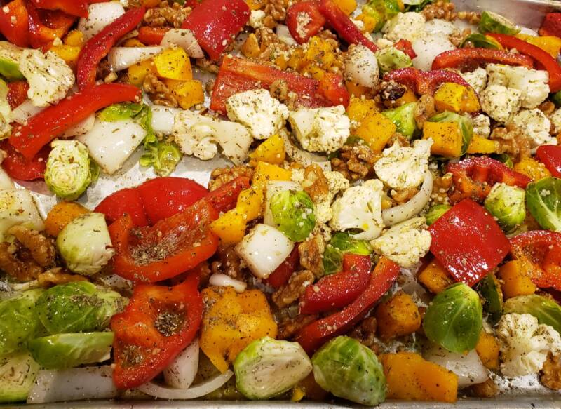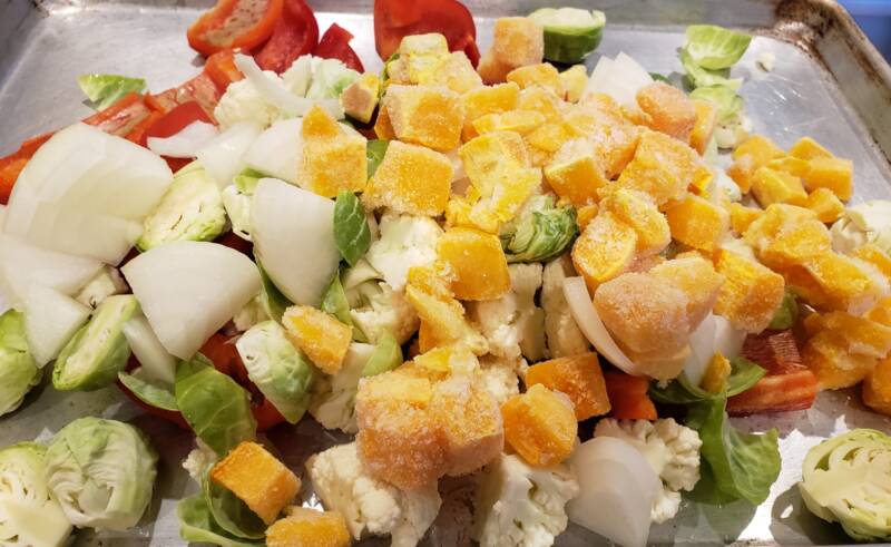 - Spread all the vegetables on a baking sheet.