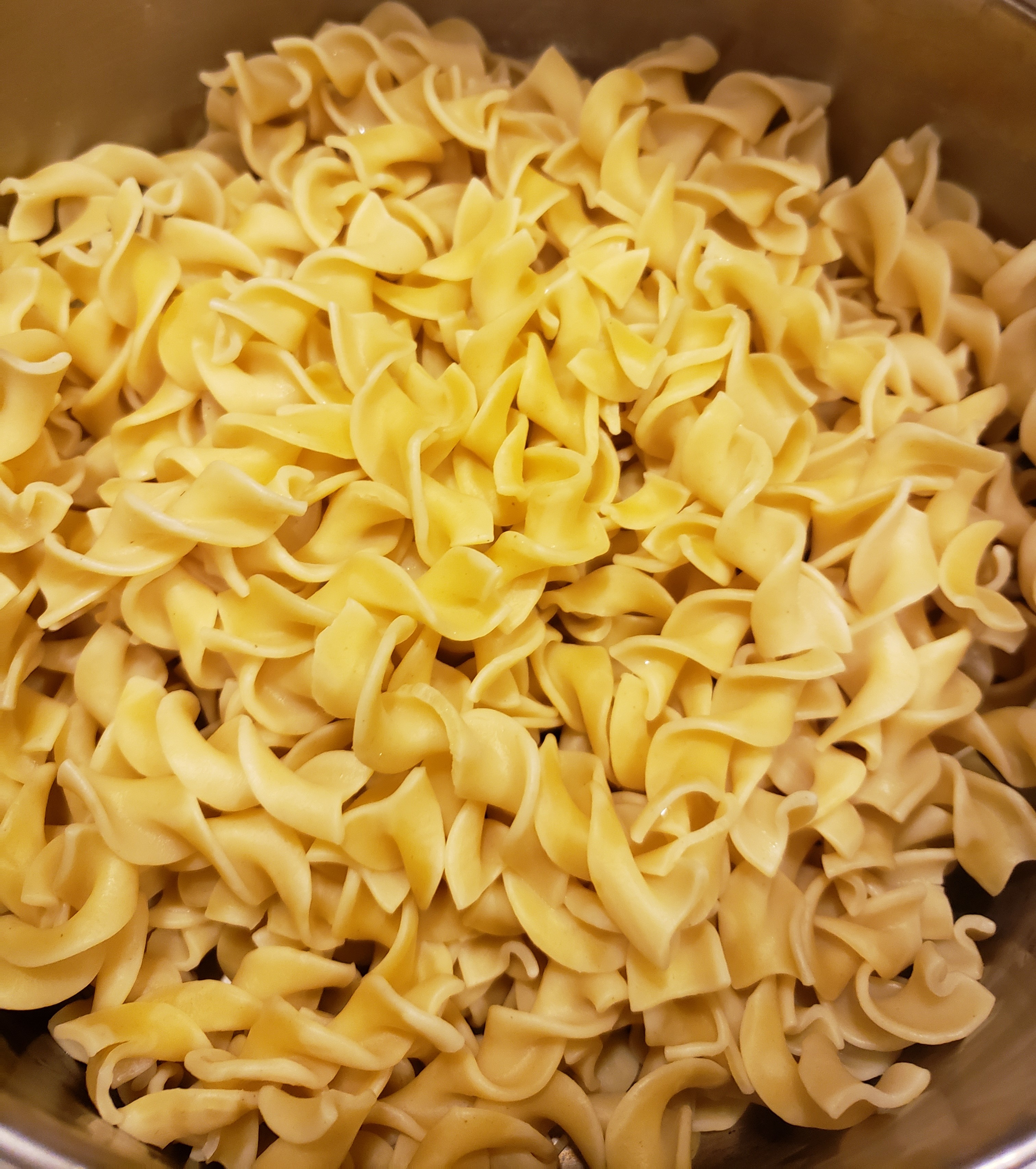The day before you serve this meal, boil the egg noodles according to the package directions. After draining the egg noodles, store them in the refrigerator for 24 hours to make them starch-resistant. If you are not on a Keto diet, you do not have to refrigerate them overnight unless you want to save yourself some time tomorrow.