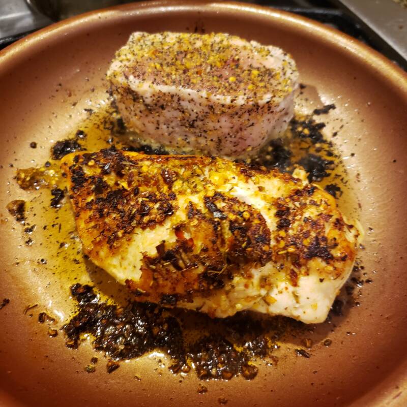 Transfer the chops or chicken back to the skillet Cover and allow to simmer until the meat is tender, about 30-35 minutes. Turn the chops once during cooking. Add the tiniest bit of water if the sauce seems to cook down too much.