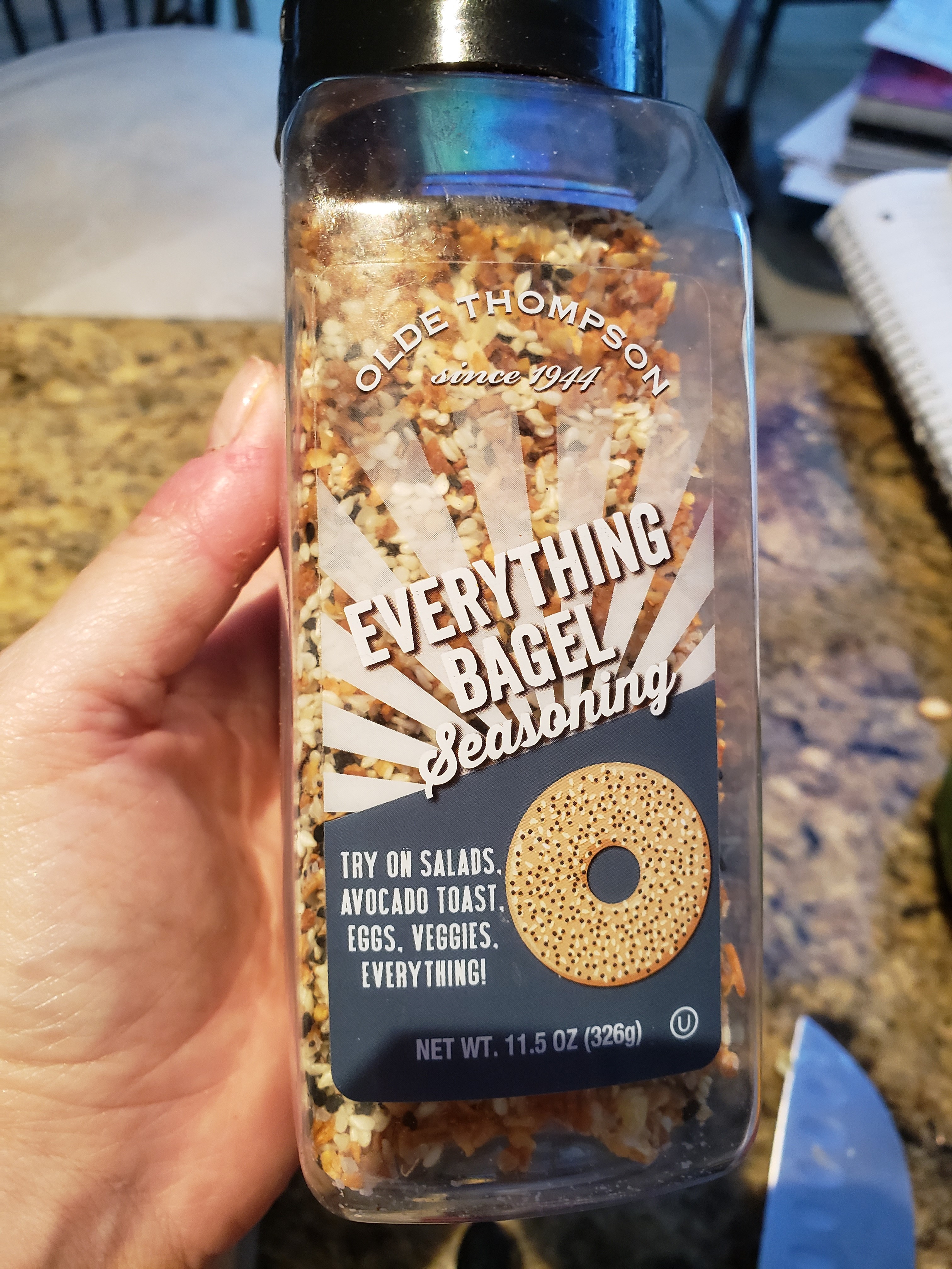 In a small bowl, pour some Everything But the Bagel seasoning. Roll each nugget in the seasoning and press lightly into the dough.