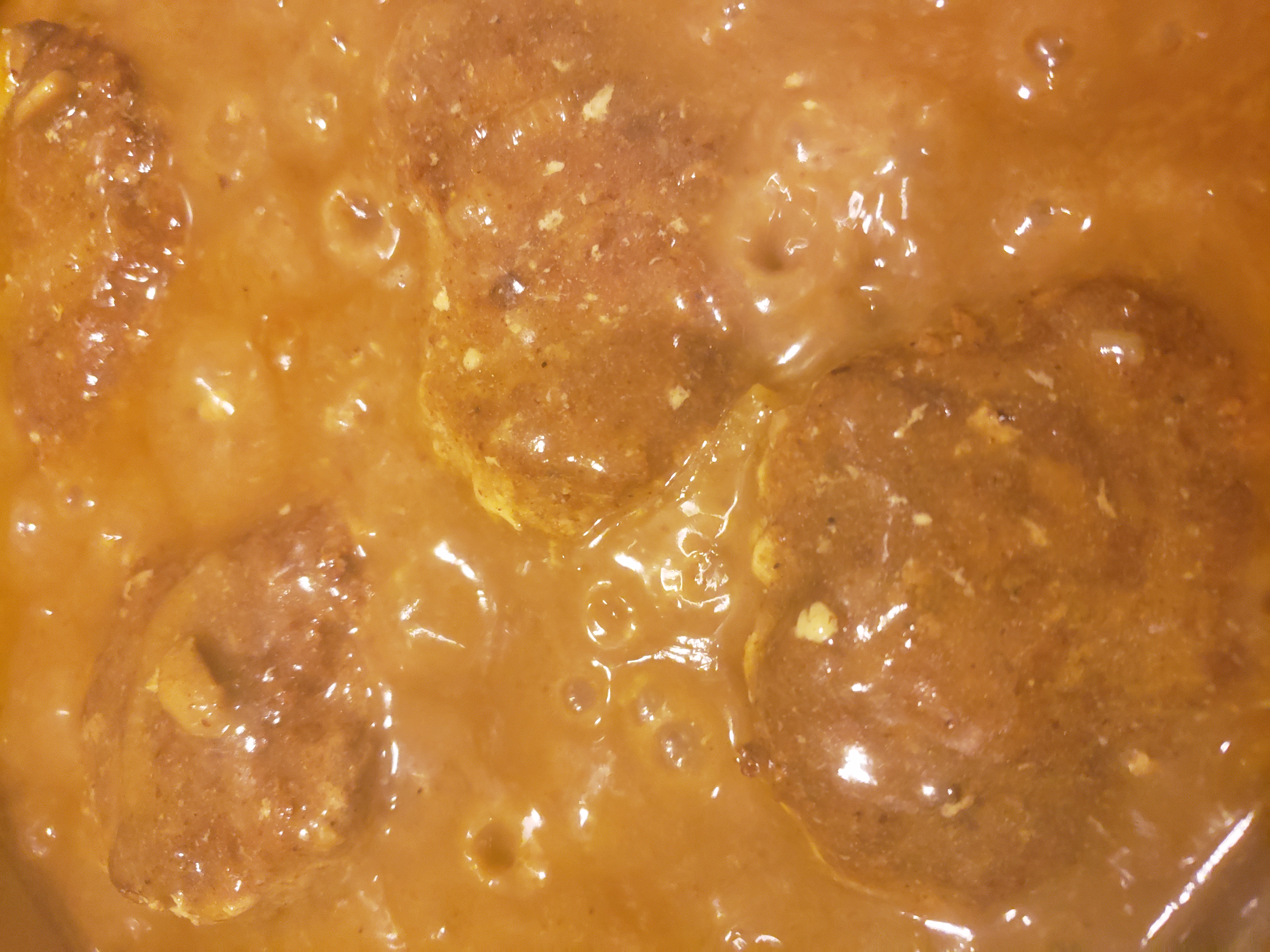 Add the patties back to the frying pan and spoon the gravy over the tops. Cook until the Salisbury steaks are heated through and serve immediately. I like to serve these with mashed cauliflower and green beans; however, mashed potatoes are good, too.