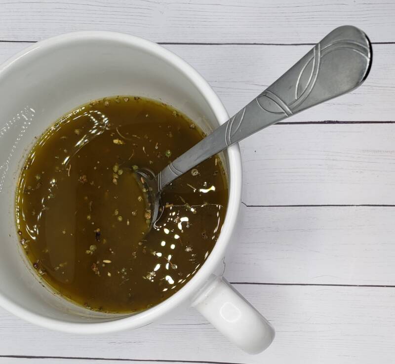 You can use your favorite salad dressing or make your own. I whipped up a simple balsamic dressing on this day. To make the dressing, use equal parts of extra virgin olive oil and balsamic vinegar. Add some salt and pepper, minced garlic, Italian seasoning and a squeeze of lemon juice. Whisk and pour over the salad to serve.