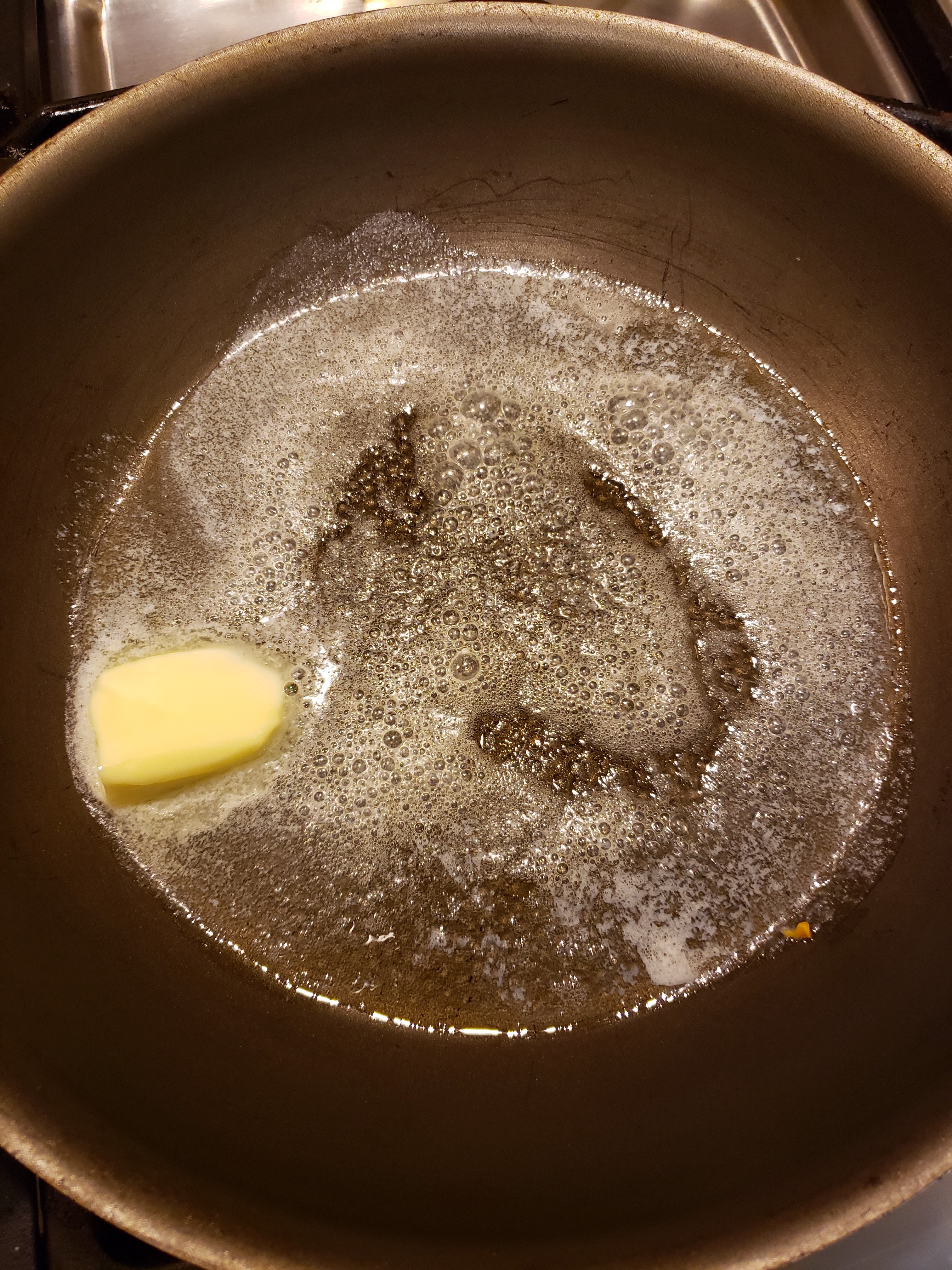When you have successfully flipped the quesadilla, lift one side of it to slide another pat of butter underneath or throw a pat of butter in the pan as you flip the quesadilla.