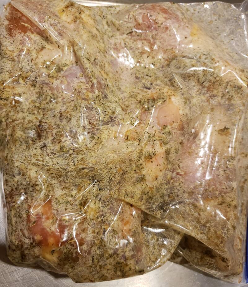 - Place the chicken in the marinade and massage it a little bit.