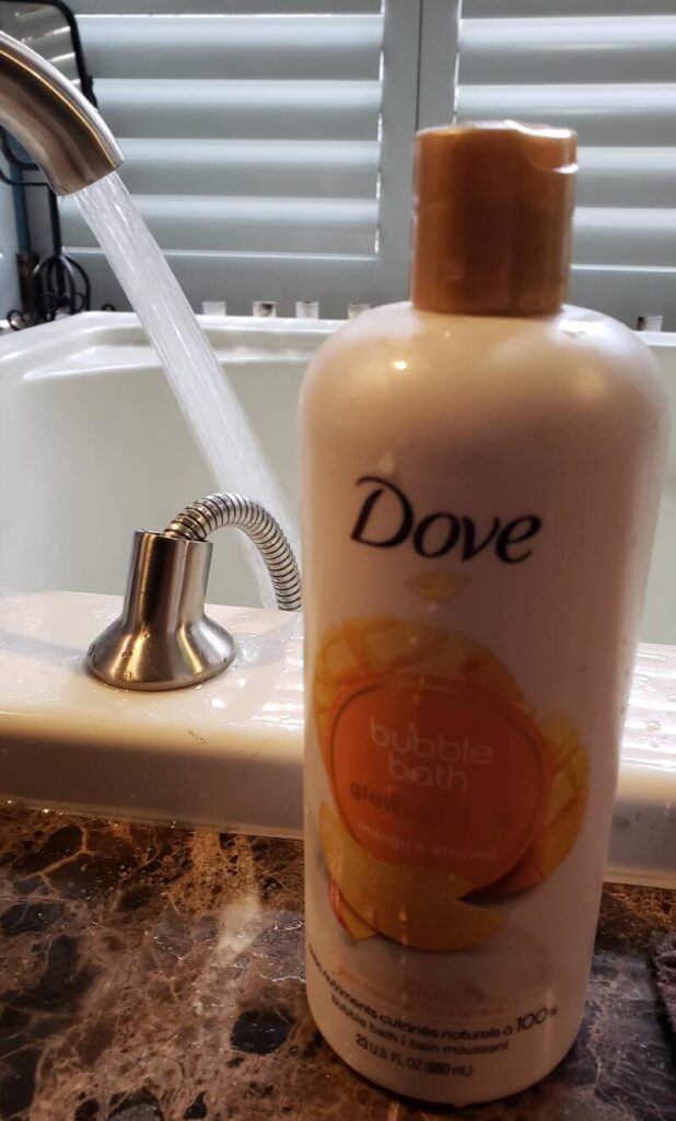 I always begin my spa day with a soak in the tub. This time I used a Dove bubble bath product. I would use this again because it had a light scent and it made my skin very soft afterward.