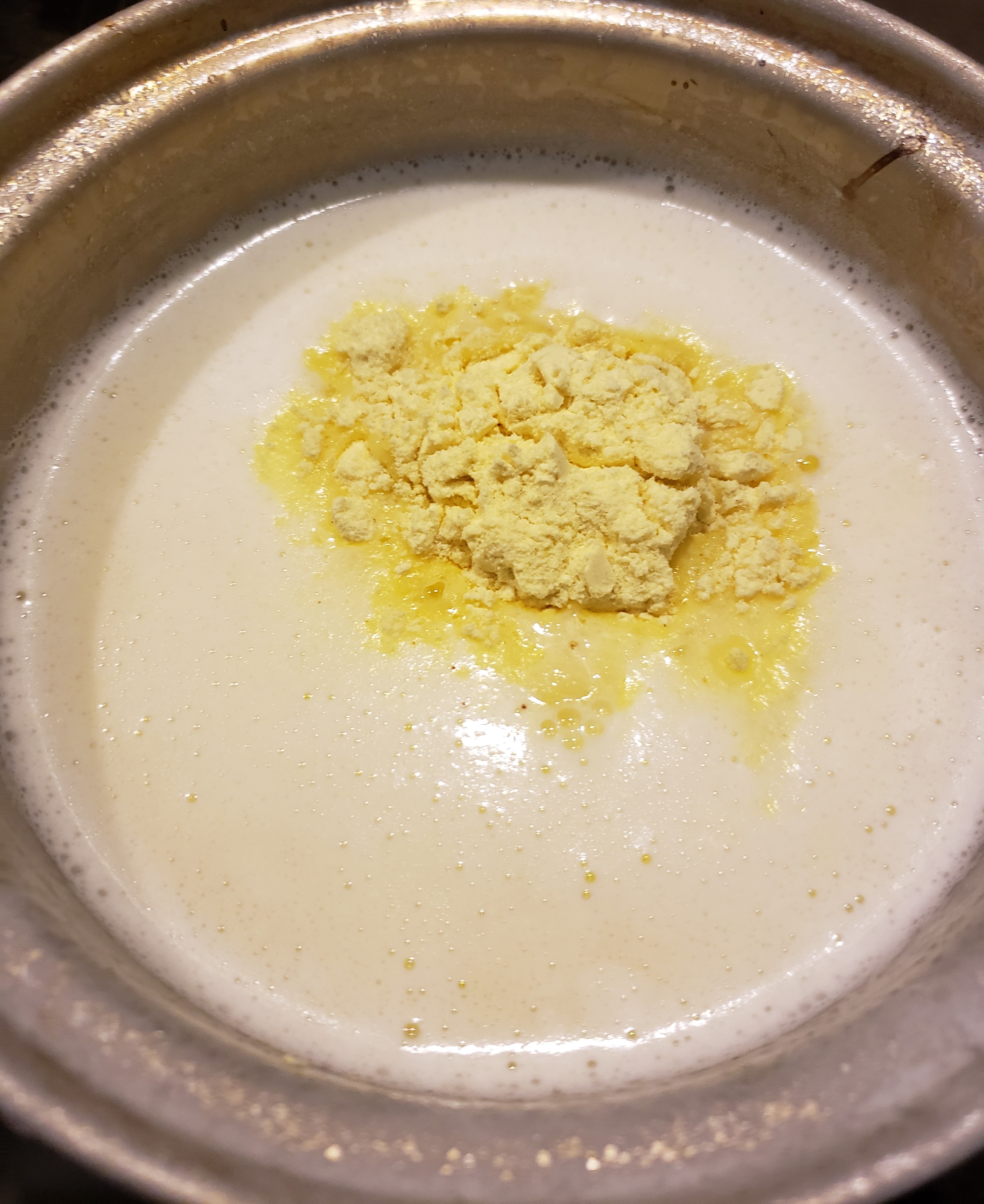While the eggs are cooking, prepare the Hollandaise sauce. Now, homemade Hollandaise sauce is easy to make, but I so happened to have a packaged mix that I needed to use up. I prepared the Hollandaise sauce according to the package directions, but I added a little extra lemon juice to boost the flavor.