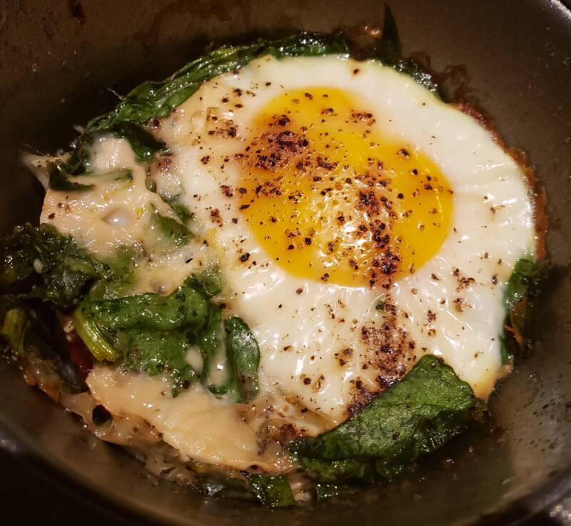 Spray a 6-cup muffin tin with cooking spray. Divide the spinach between the six muffin cups. You can add more cheese on top of the spinach if desired. Season with salt and pepper.