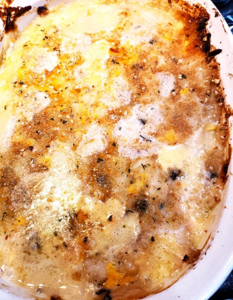 - Bake at 375 degrees for 45 minutes until browned and bubbly.