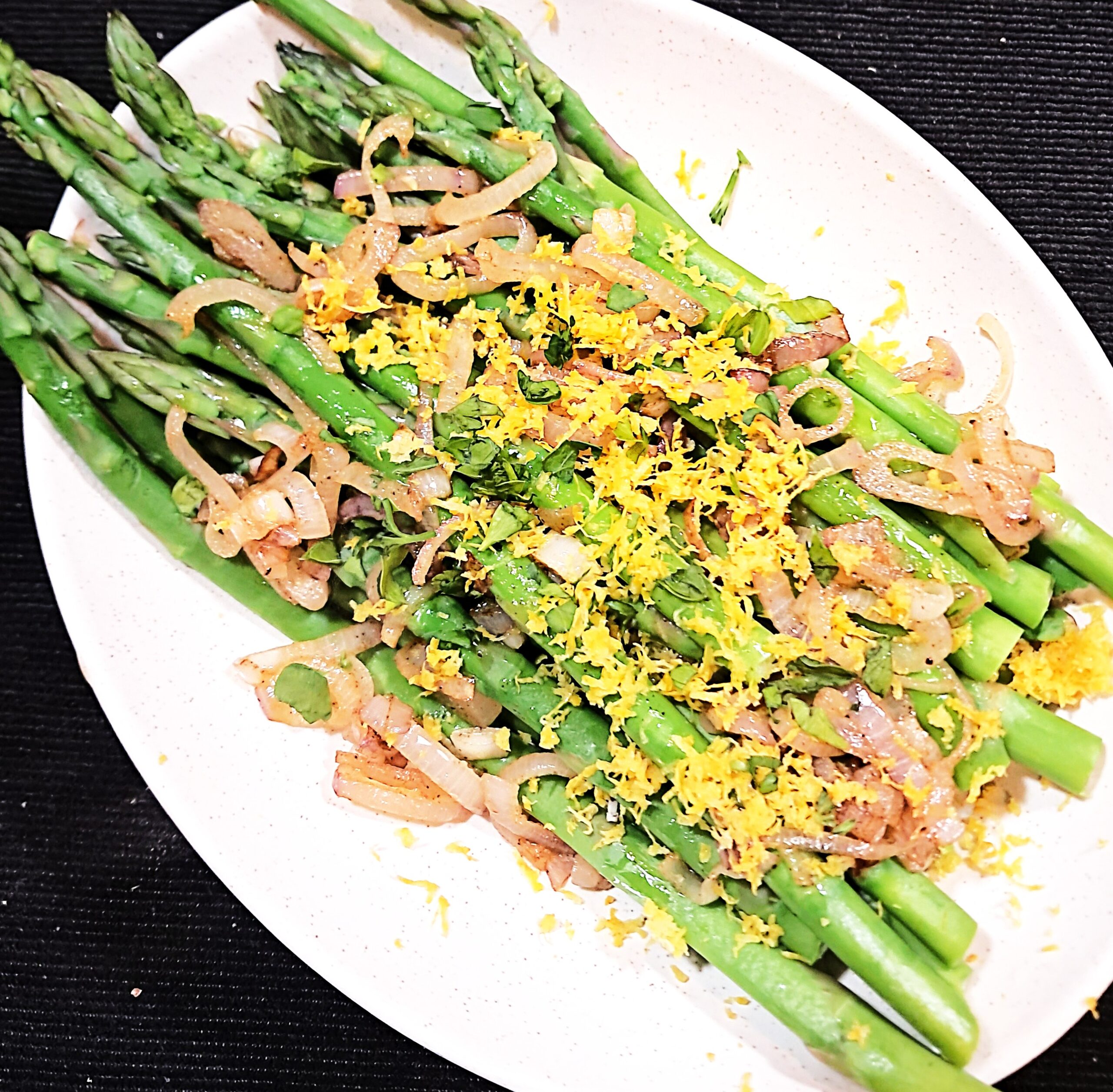 Zest the lemon over the top of the asparagus. Serve immediately.