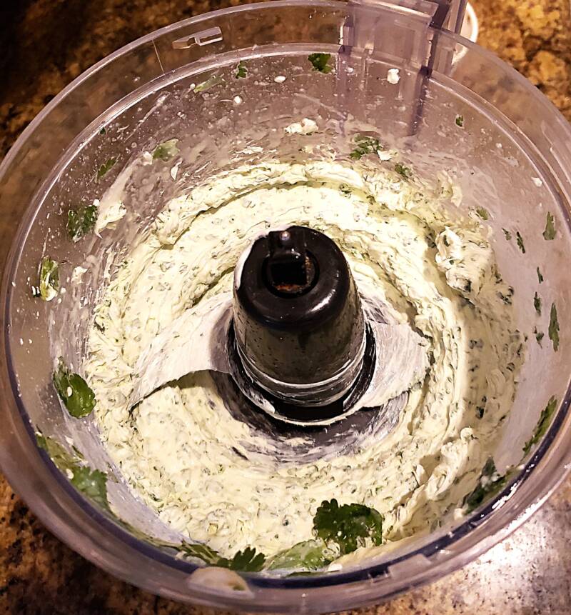 In the meantime, prepare the filling. In the bowl of a food processor or blender, add the cream cheese, cilantro, lime juice, salt and hot sauce. Blend until smooth.