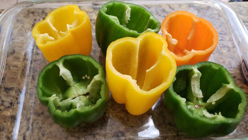- Take out the ribs and rinse the inside of the peppers. Set the peppers aside
