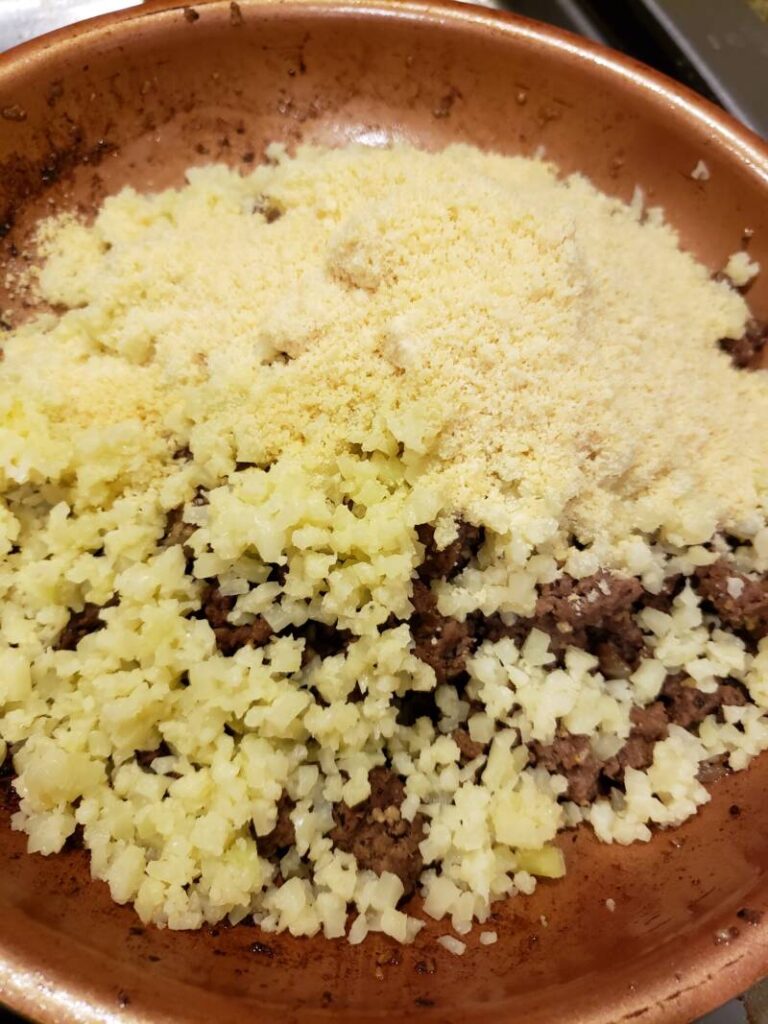 Add the cauliflower rice or starch-resistant rice. Stir until well combined. Turn down the heat and keep warm.