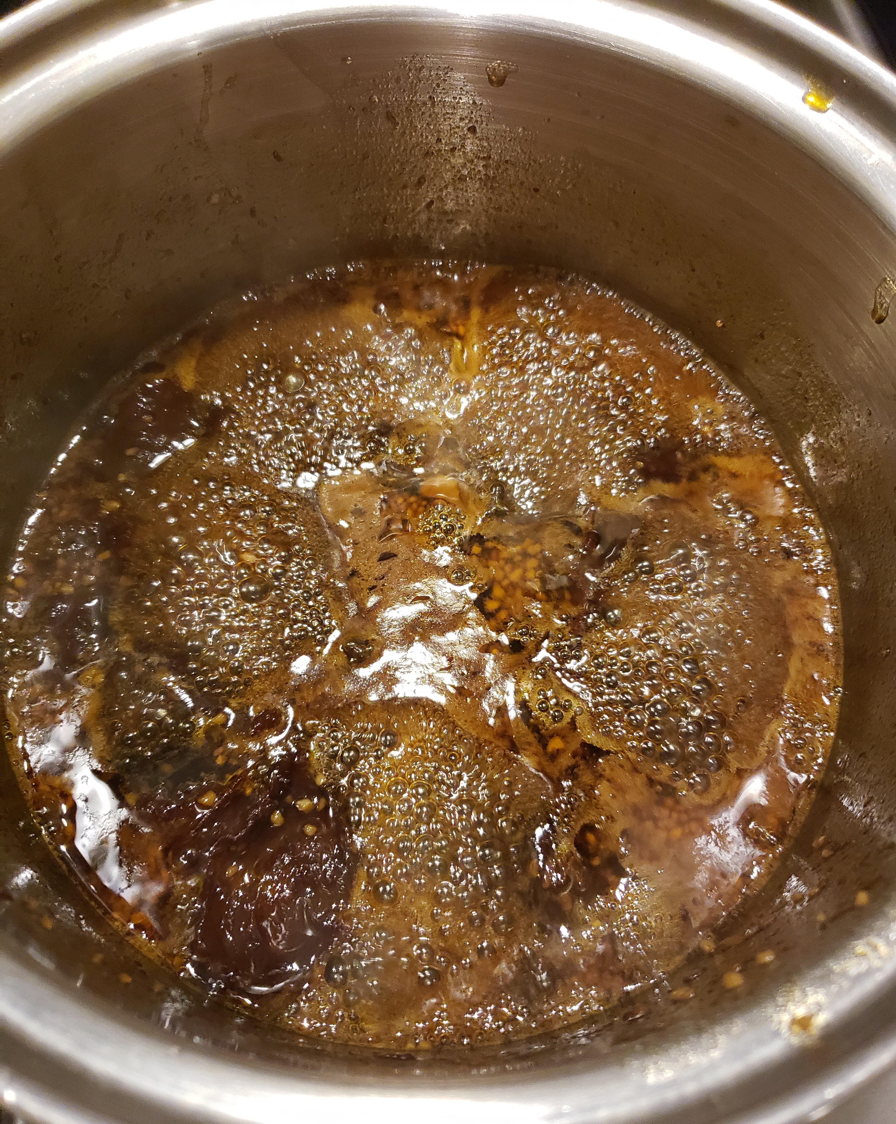 Heat the spice mixture over low heat to dissolve the brown sugar into the other spices. Stir occasionally until it begins to bubble slightly.