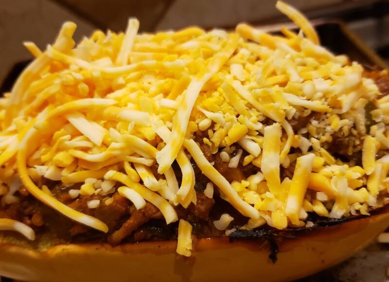 Top the spaghetti squash with cheese.