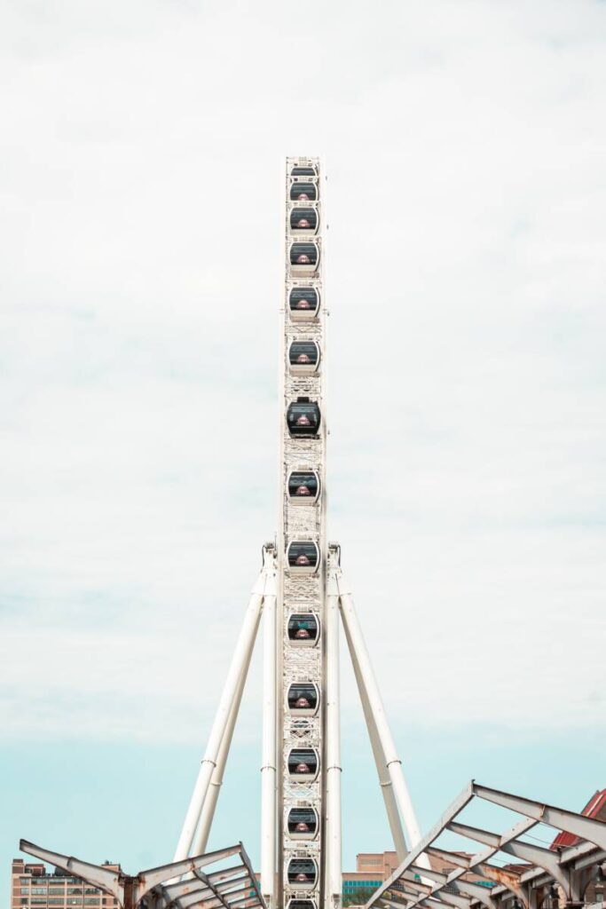 St. Louis Wheel – The St. Louis Wheel is located in downtown St. Louis not far from the Gateway Arch. Your 15 minute ride takes place in a enclosed, climate controlled cabin that holds eight riders. The Wheel moves slowly, but makes four revolutions on your ride.
