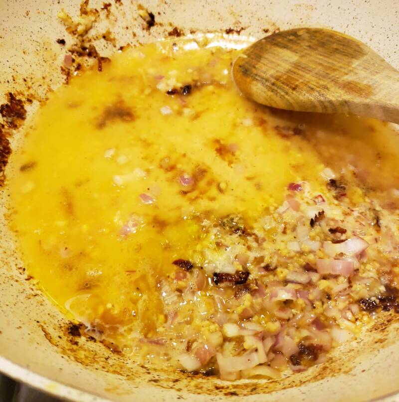 Add the lemon juice, lemon zest and white wine. Stir to combine.