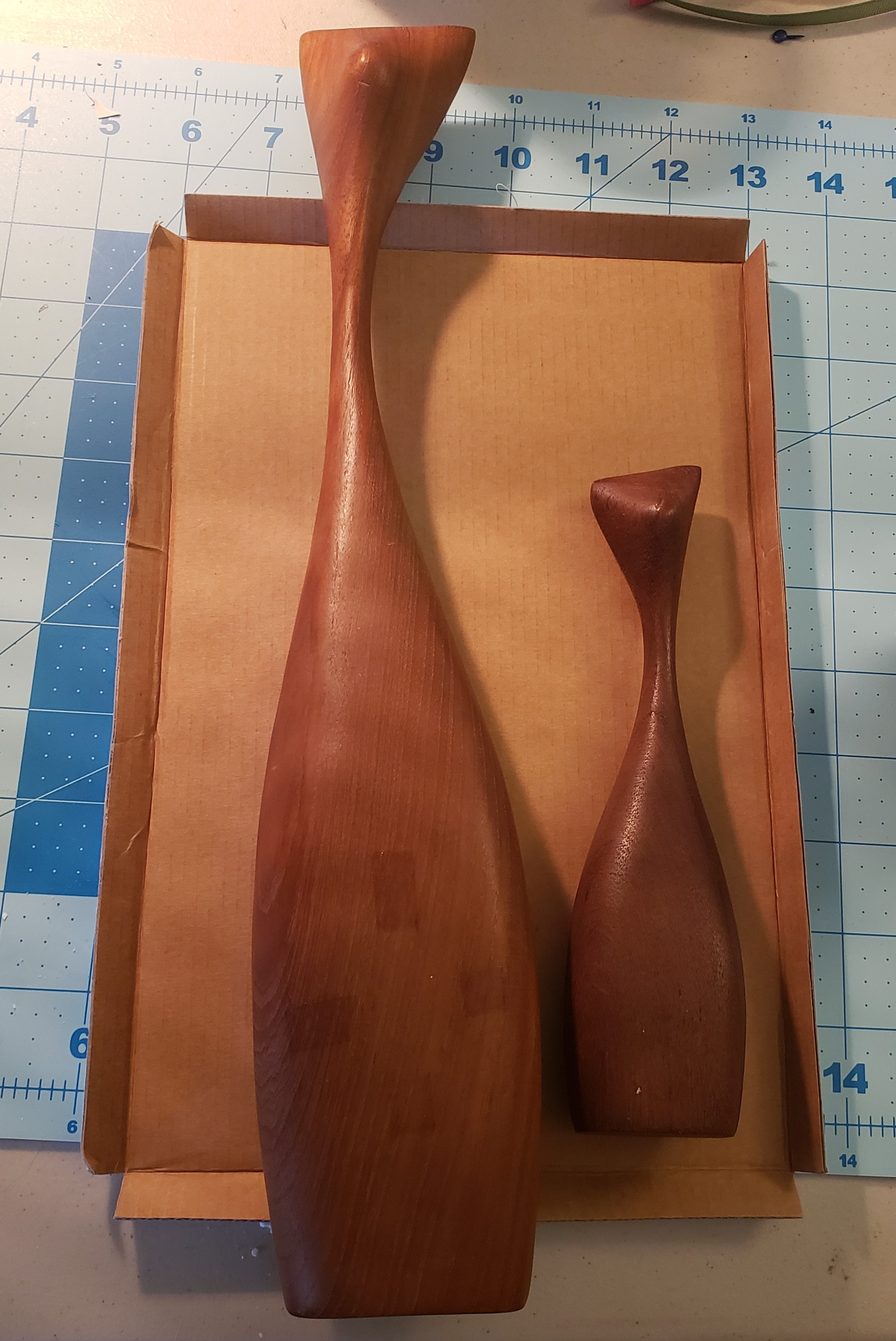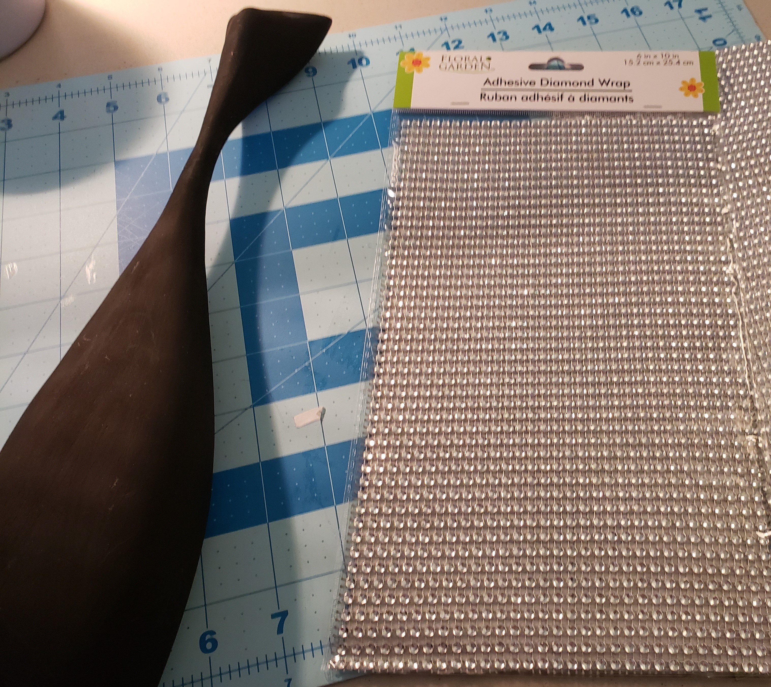 An ongoing task is going through the boxes in my mother’s storage unit to see what I can sell, what should be donated and separate the family photos and mementos. I found a pair of wooden cats that my mother always kept on her dresser. I’ve always liked them, but they were plain brown wood pieces. I decided I would glam them up a bit for my own taste. This turned out to be a very simple craft that did not take much time to complete.