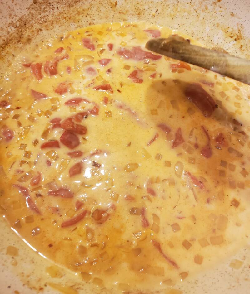 - Add the heavy cream and parmesan. Stir until melted.