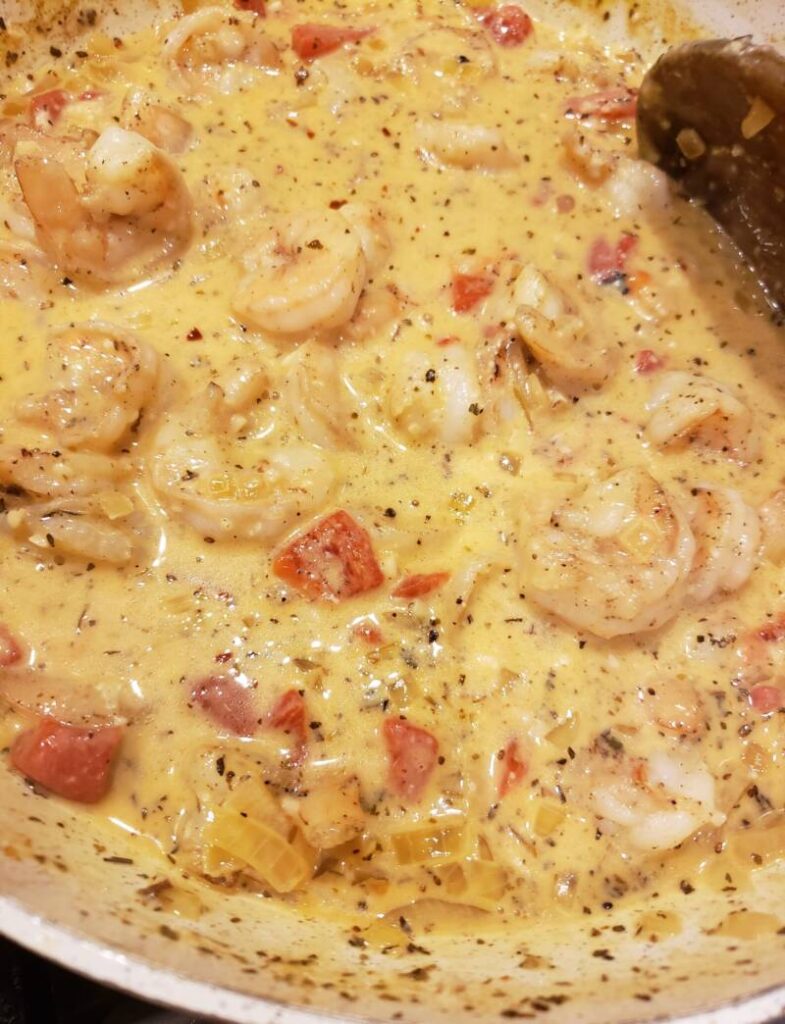- Add the shrimp and cook until no longer pink.