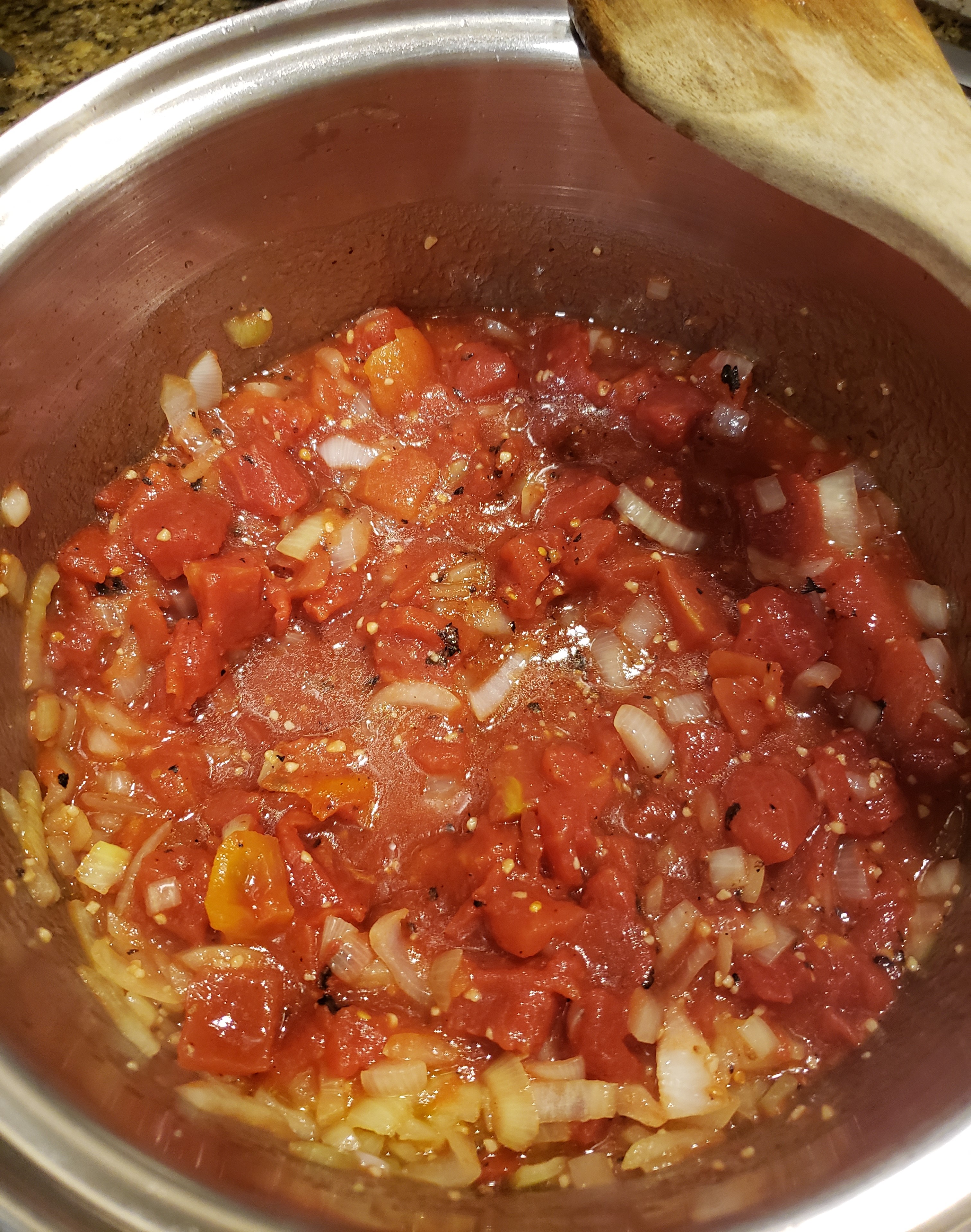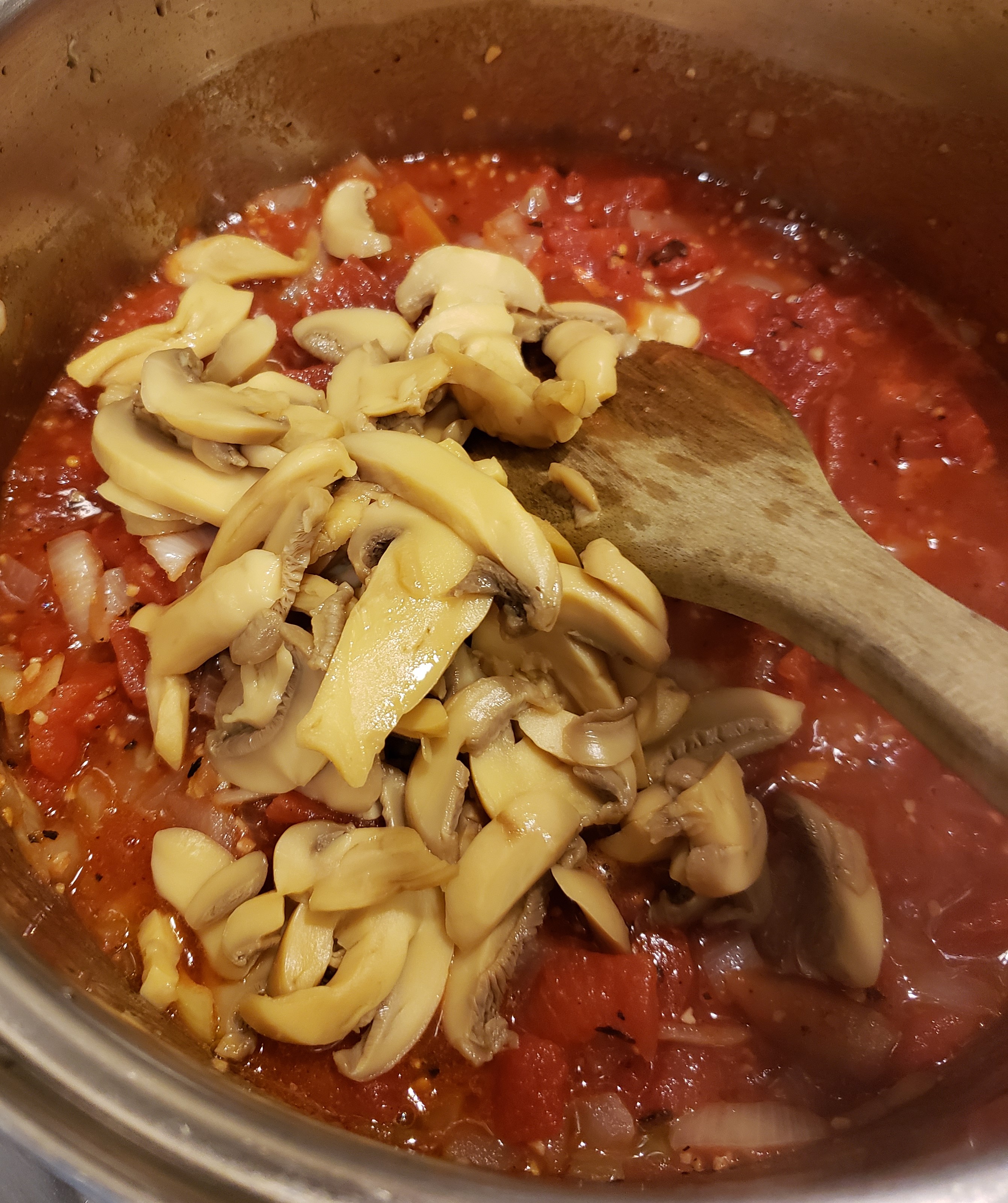 Add the fire-roasted tomatoes and mushrooms. Stir to combine.