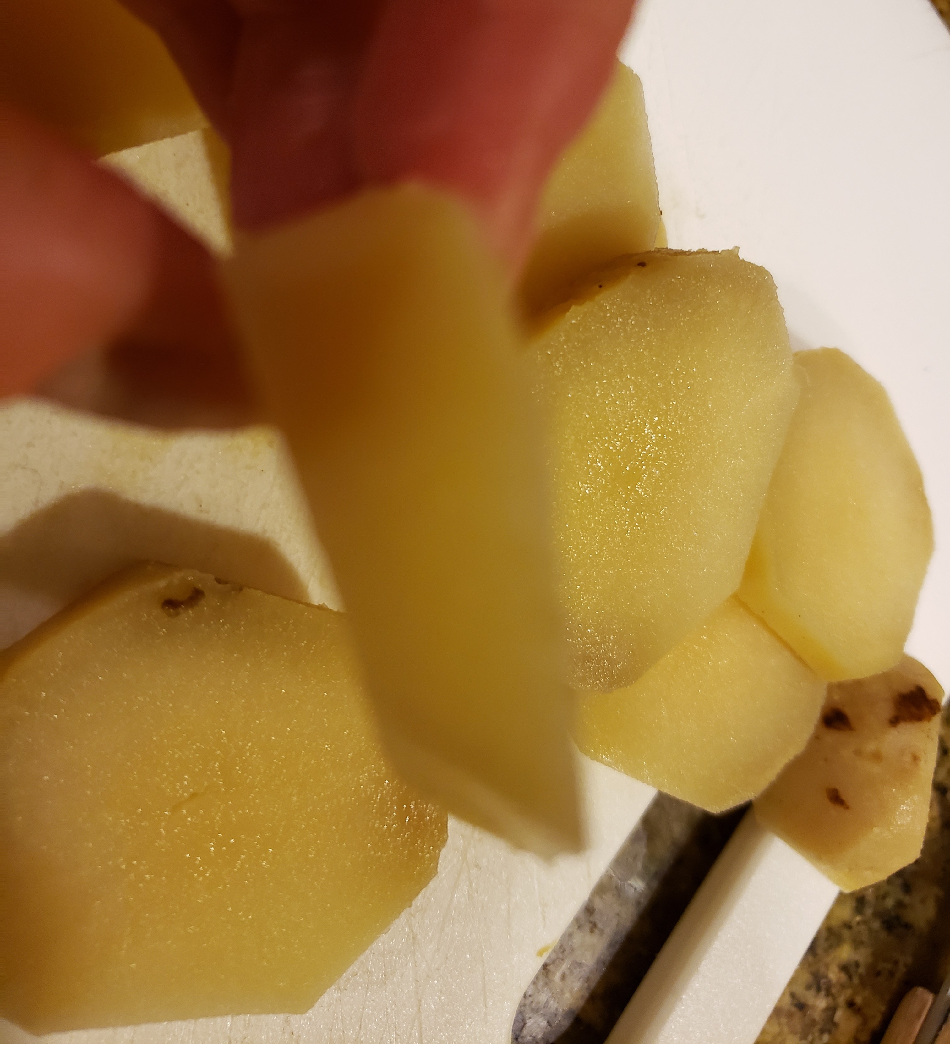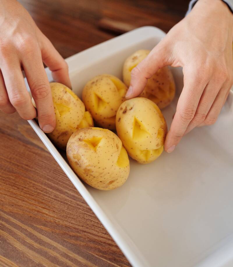 6 large potatoes, peeled and cooked 24 hours ahead (You can use any type of potatoes. If using red potatoes, use 12 instead because they are generally smaller sized)