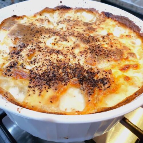White Cheddar Scalloped Potatoes are a classic side dish that is perfect for Easter dinner. This side dish pairs well with ham, roast, chicken, pork and just about any other protein. The layers of potatoes, the creamy sauce and the cheesy topping satisfy every taste bud.