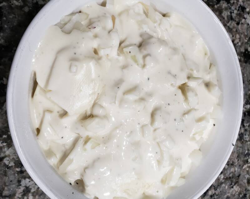 - Top with a layer of onions. Set aside.