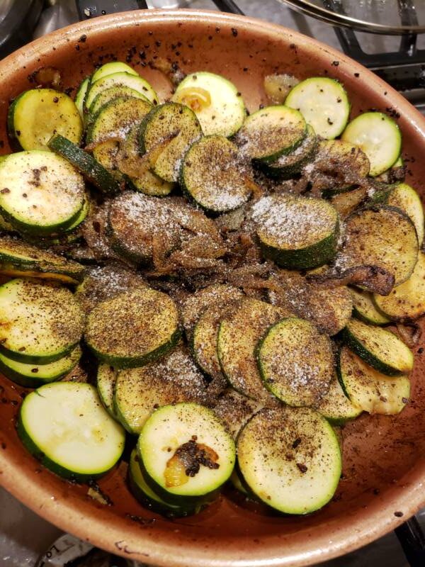 - 2 lbs. zucchini, sliced roughly about 4 zucchini, sliced 1/4″ thick